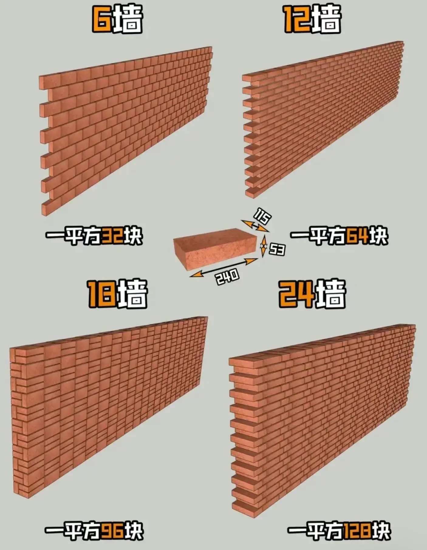 12墙(约12cm):红砖平铺一层,厚度≈一部手机宽, 【 89.5-134.1 /m²】